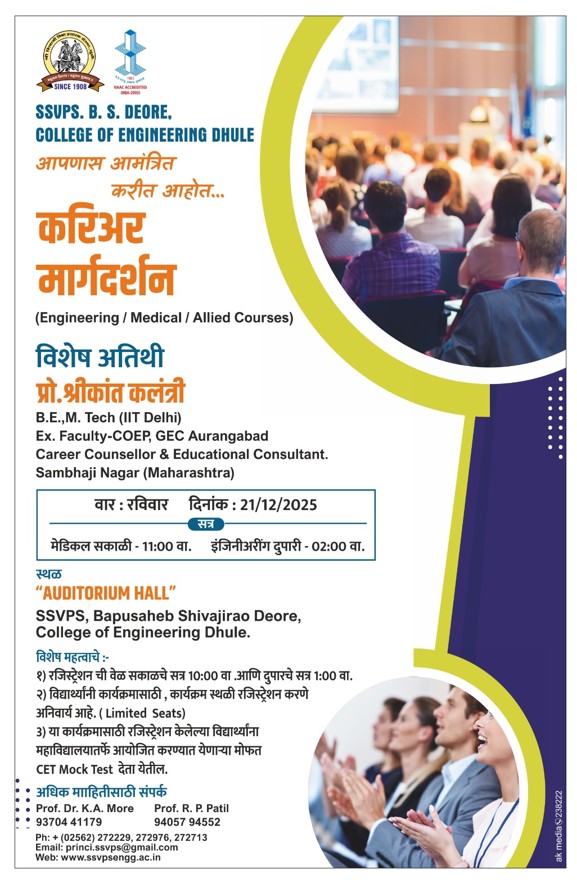 The event was jewel marked by the mentoring presence of Hon'ble Prof. Shrikant Kalantri who has been the former faculty at the prestegious College of Engineering Pune (CoEP) and GEC Aurangabad. He is also a reknowned Career Counceller and Educational Consultant.