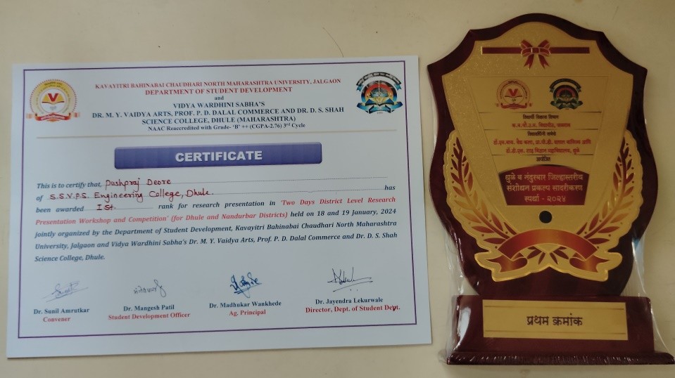 The District Level Research Presentation Workshop and Competition proved to be a highly enriching experience for all participants. It provided a valuable platform for showcasing innovative ideas, promoting research culture, and fostering academic collaboration among institutions.The management and faculty of Bapusaheb Shivajirao Deore College of Engineering, Dhule, express their appreciation to KBCNMU, Jalgaon and Vidya Vardhini Sabha’s Dr. M. Y. Vaidya College, Dhule, for organizing this event and providing students with an opportunity to present their work.