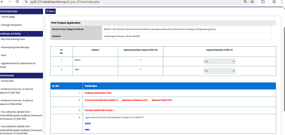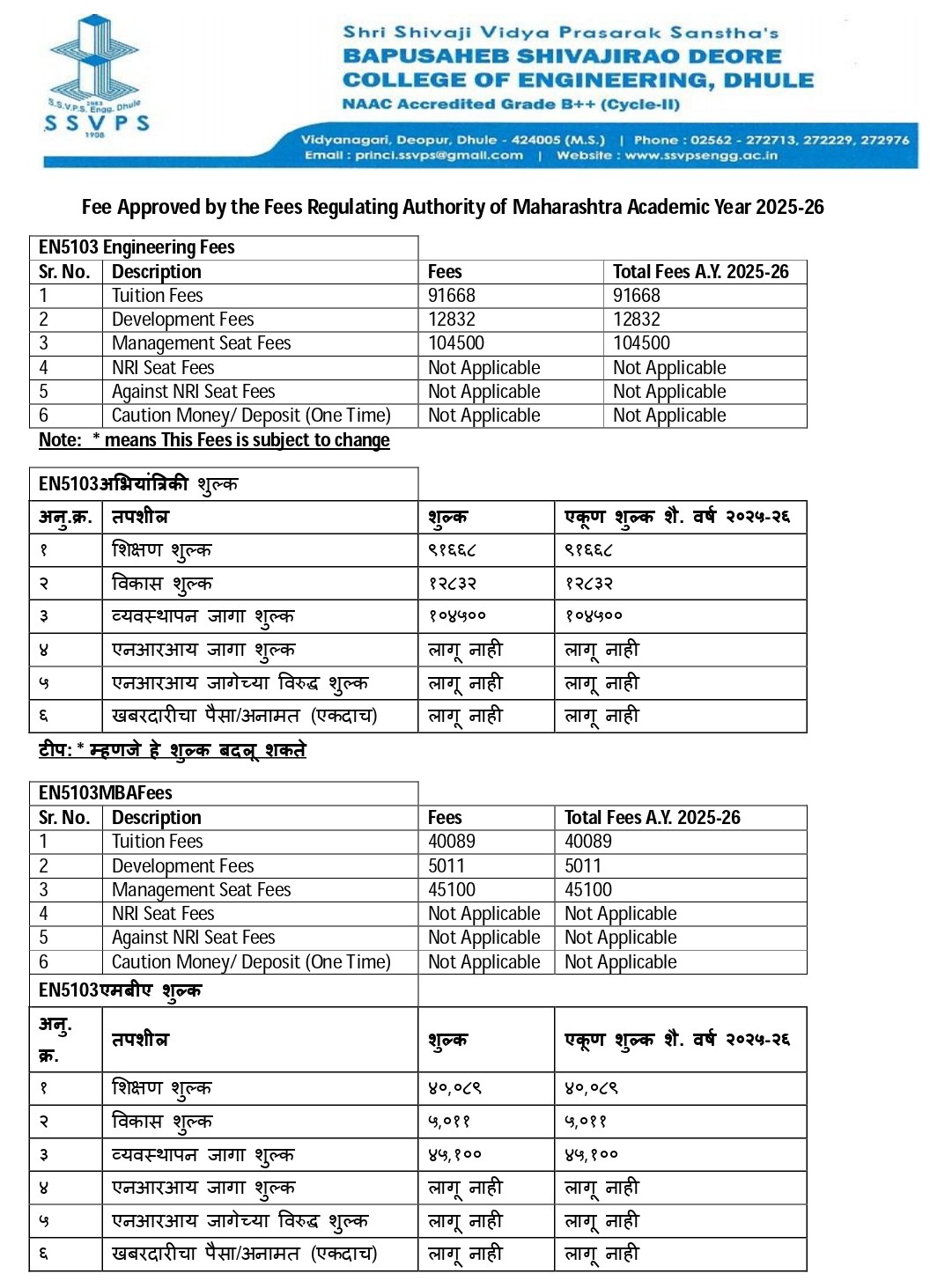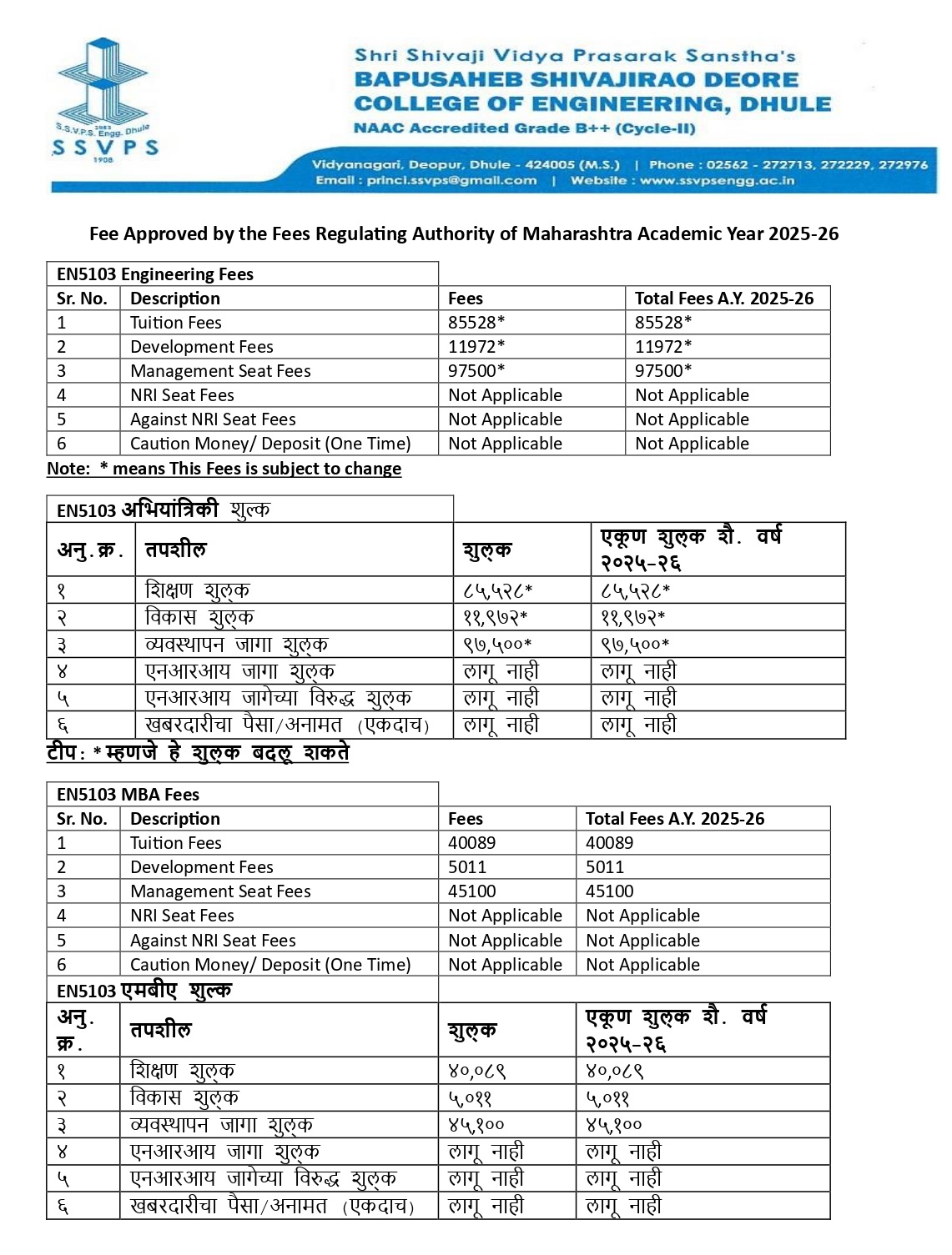 Fee Approved by the Fees Regulating Authority of Maharashtra Academic Year 2025-26