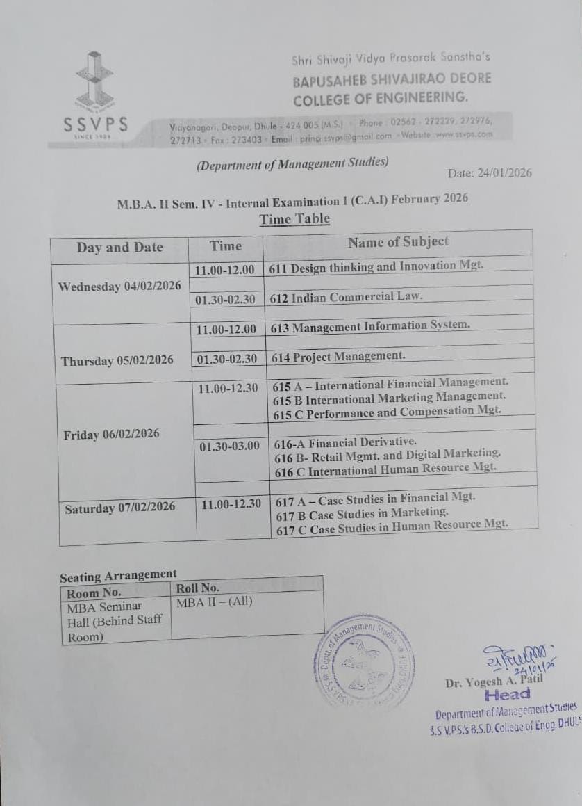 Timetable: Even Sem CA- I Timetable 2025-26 Time table Even Sem-2025-26 Time Table Odd Sem ( 2025-26)