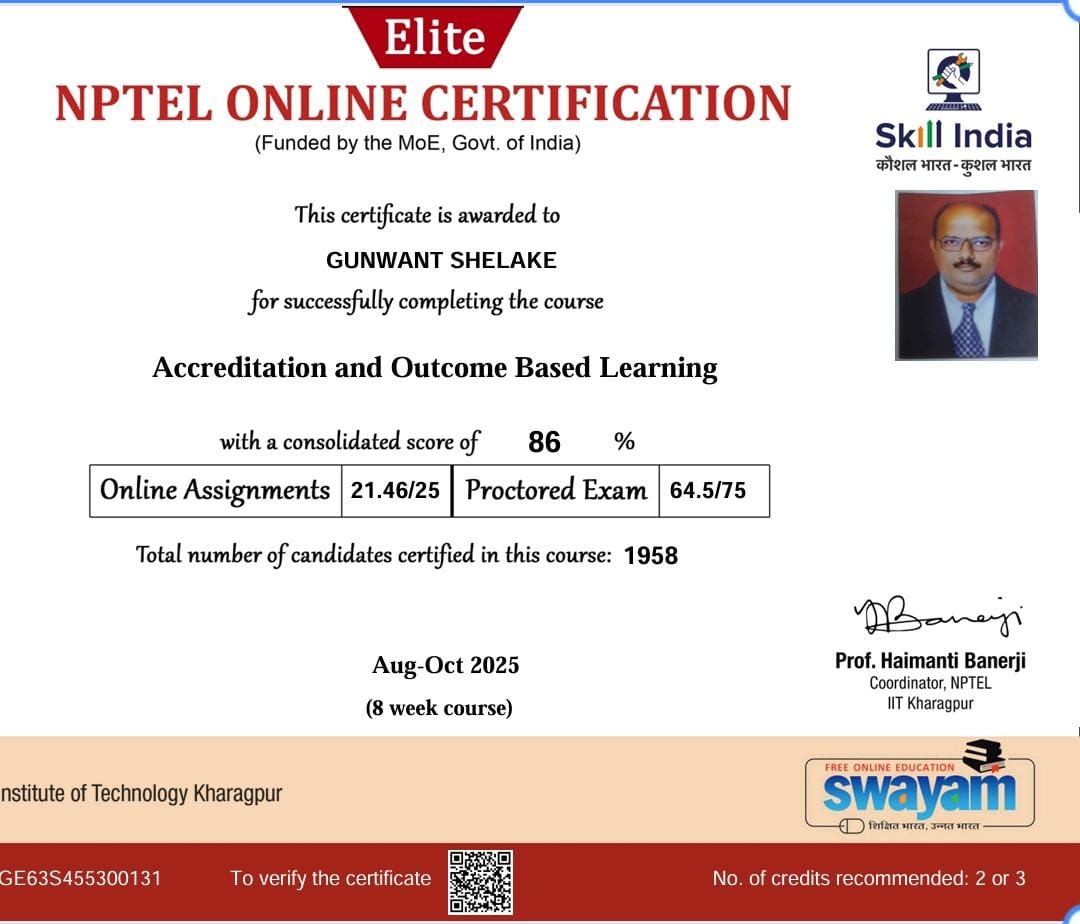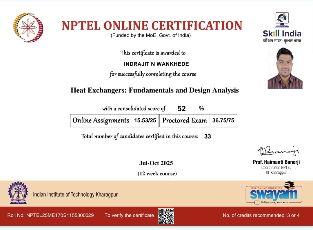 Departmental Faculty Achievements of Mechanical Engineering: Prof Indrajeet Wankhede NPTEL CERTIFICATION Prof Kailas Makhija NPTEL CERTIFICATION Prof Gunwant Shelke NPTEL CERTIFICATION Dr Sanjeev D Suryawanshi Multipurpose Cooling Apparatus Dr Sanjeev D Suryawanshi Curved Surface Absorber Type Solar Fluid Heater Dr Sanjeev D Suryawanshi Curved Surface Absorber Type Solar Fluid Heater Dr Sanjeev D Suryawanshi Curved Surface Absorber Type Solar Fluid Heater Dr Purushottam S Desale Patent 541810 Dr SANJEEV DAMODAR SURYAWANSHI Patent: Brick Box Type Solar Cooker