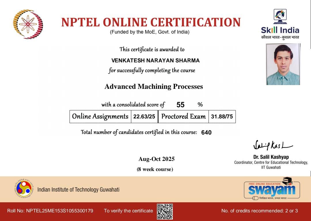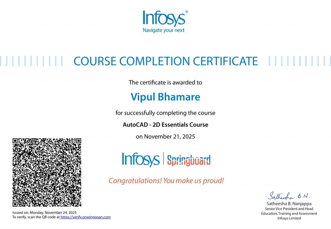 Departmental Student Achievements of Mechanical Engineering: Sanket Jagdish Deore NPTEL CERTIFICATION Venkatesh Narayan Sharma NPTEL CERTIFICATION Vipul Bhamre AutoCAD Essentilas Hitesh Shinde AutoCAD Essentials Darshan Bedse AutoCAD Essentials